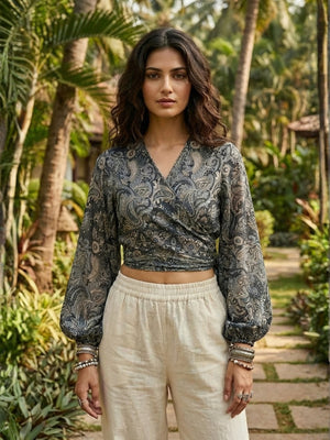 Elaria smoke paisley boho wrap top