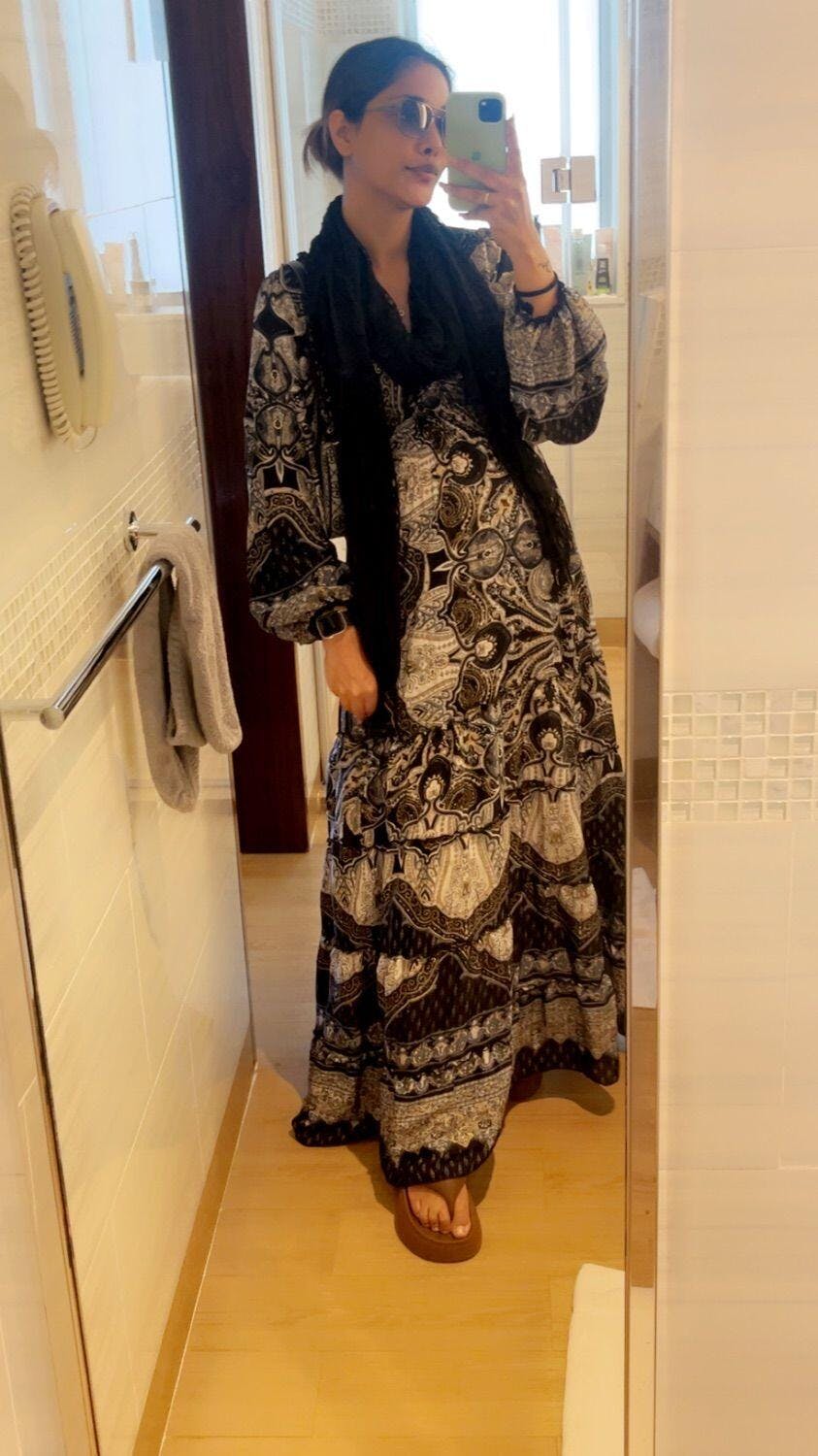 This bohemian maxi dress in maroon with teal paisley and golden foil print radiates effortless style. Featuring a flattering V-neck and an elastic waist for the perfect fit, it comes with peasant sleeves and a flowy hemline for a chic vibe. Pair with strappy sandals, a floppy hat, and layered jewellery for beach days or music festivals.