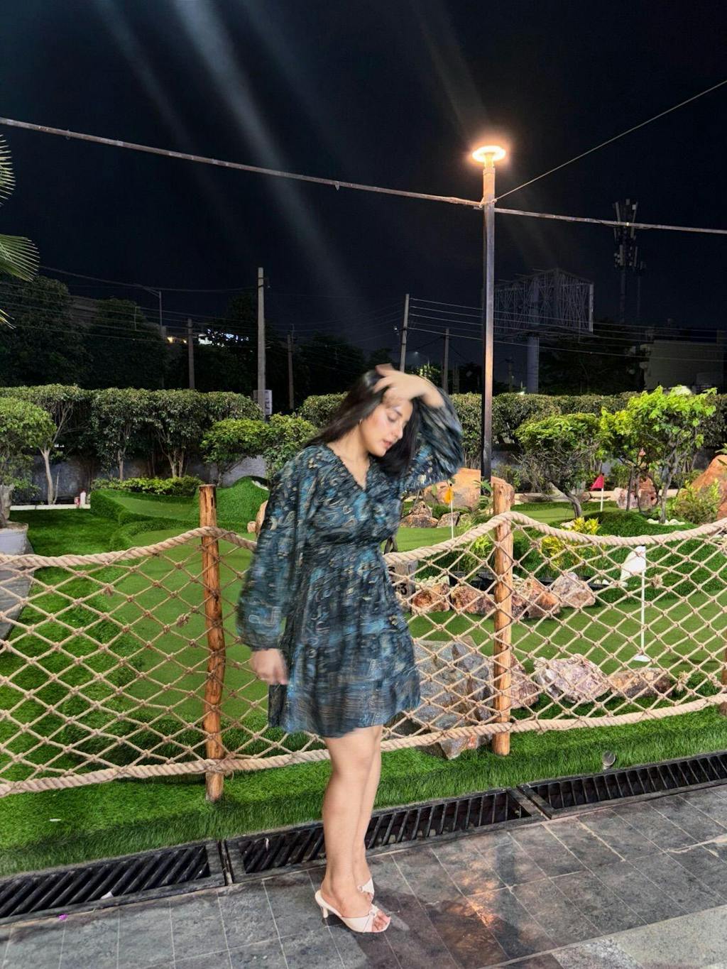 Drape yourself in earthy enchantment with this boho mini dress bathed in rich tones of forest jade, charcoal moss, and shimmering gold foil paisleys. The deep V-neckline, smocked waist, full sleeves, and tiered hem create a silhouette that’s soft, statement-making, and made for moonlit evenings and creative souls.