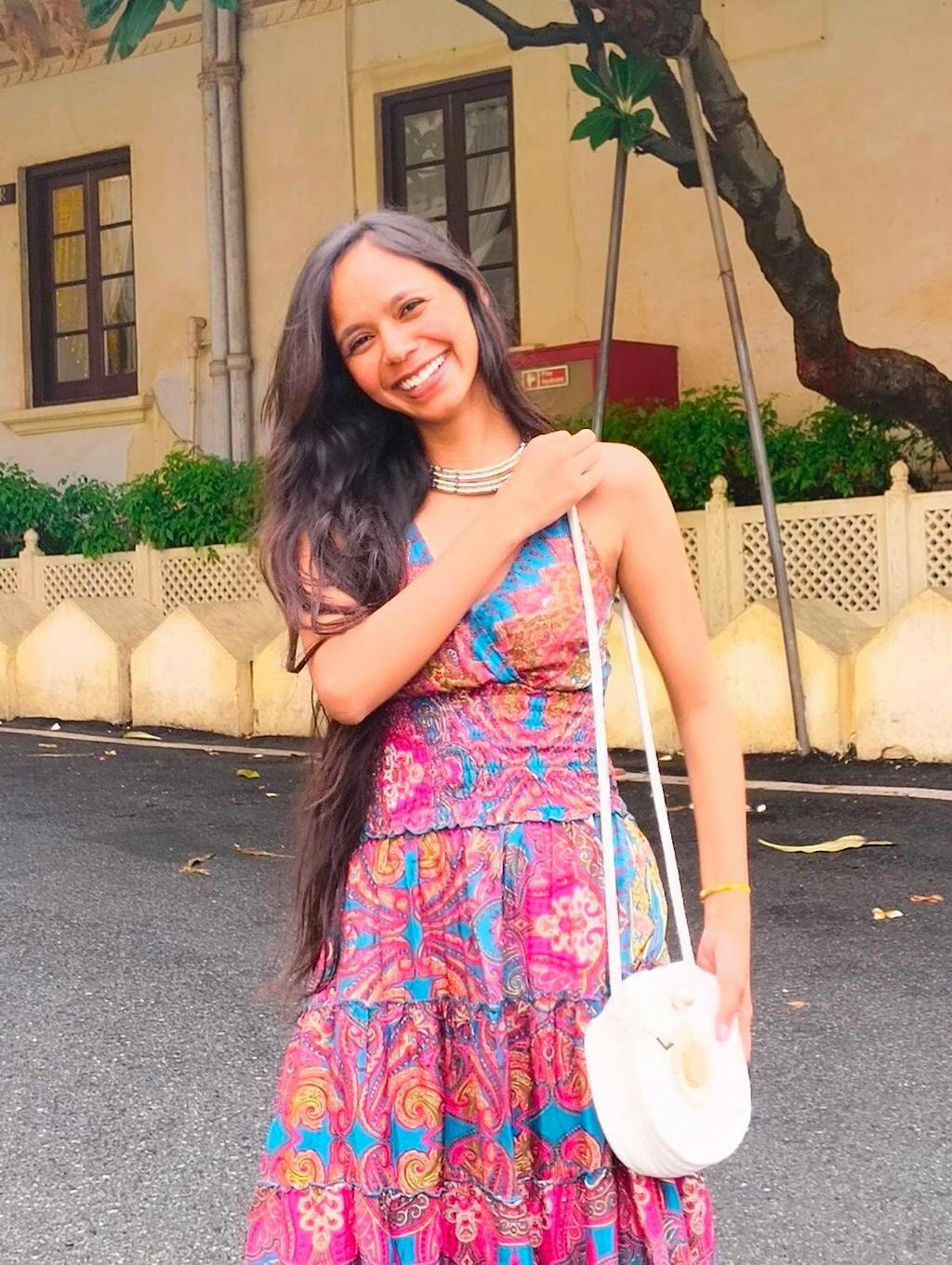 Unleash your inner fire in this boho maxi dress drenched in sunset ember, molten gold, and deep rust, adorned with bold paisley prints and radiant gold foil detailing. The tiered silhouette, smocked waist, and delicate spaghetti straps offer breezy comfort and goddess-worthy twirl—perfect for festivals, holidays, or moonlit markets.