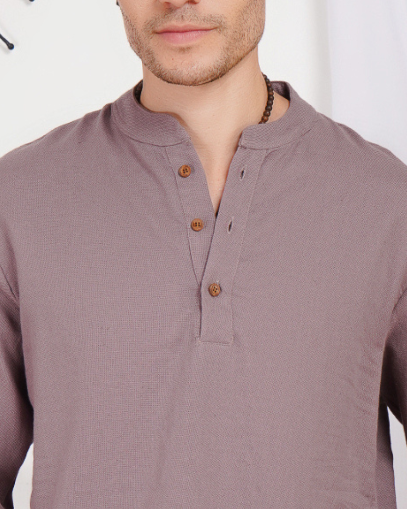 This bohemian organic cotton Henley shirt comes in a calming Dusty-Mauve Taupe tone that feels soft, grounded, and effortlessly stylish. The breathable fabric becomes lighter with every wash, while the mandarin collar adds a modern, earthy edge. A relaxed, mood-elevating essential for easygoing boho days.
